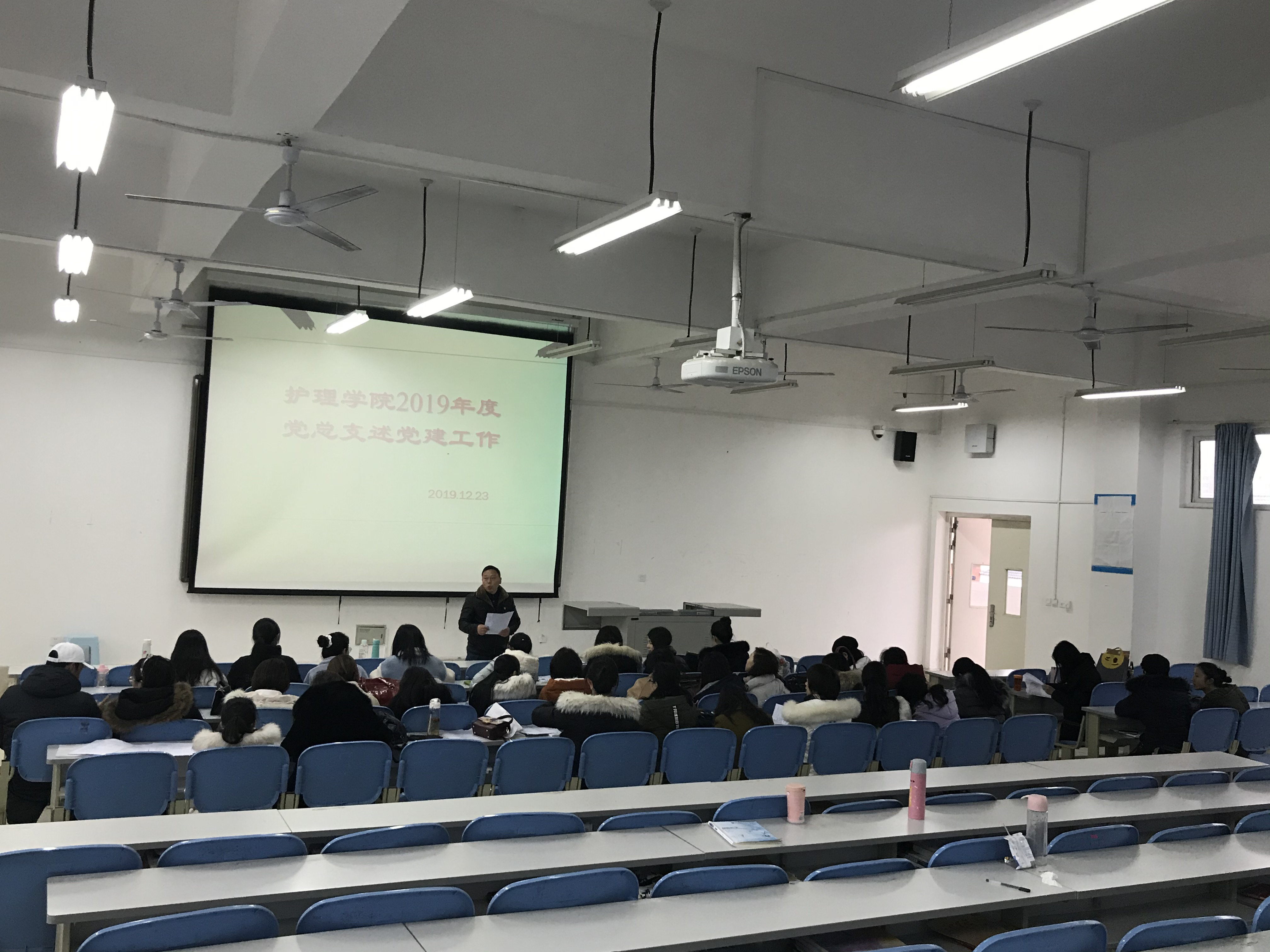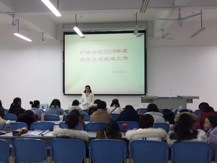 2019年12月23日下午,护理学院党总支在北区4教4-3教室开展组织生活——党建述职、测评及述责述廉。护理学院全体党员、教师代表、学生代表共计30余人。此次活动由侯书记主持。