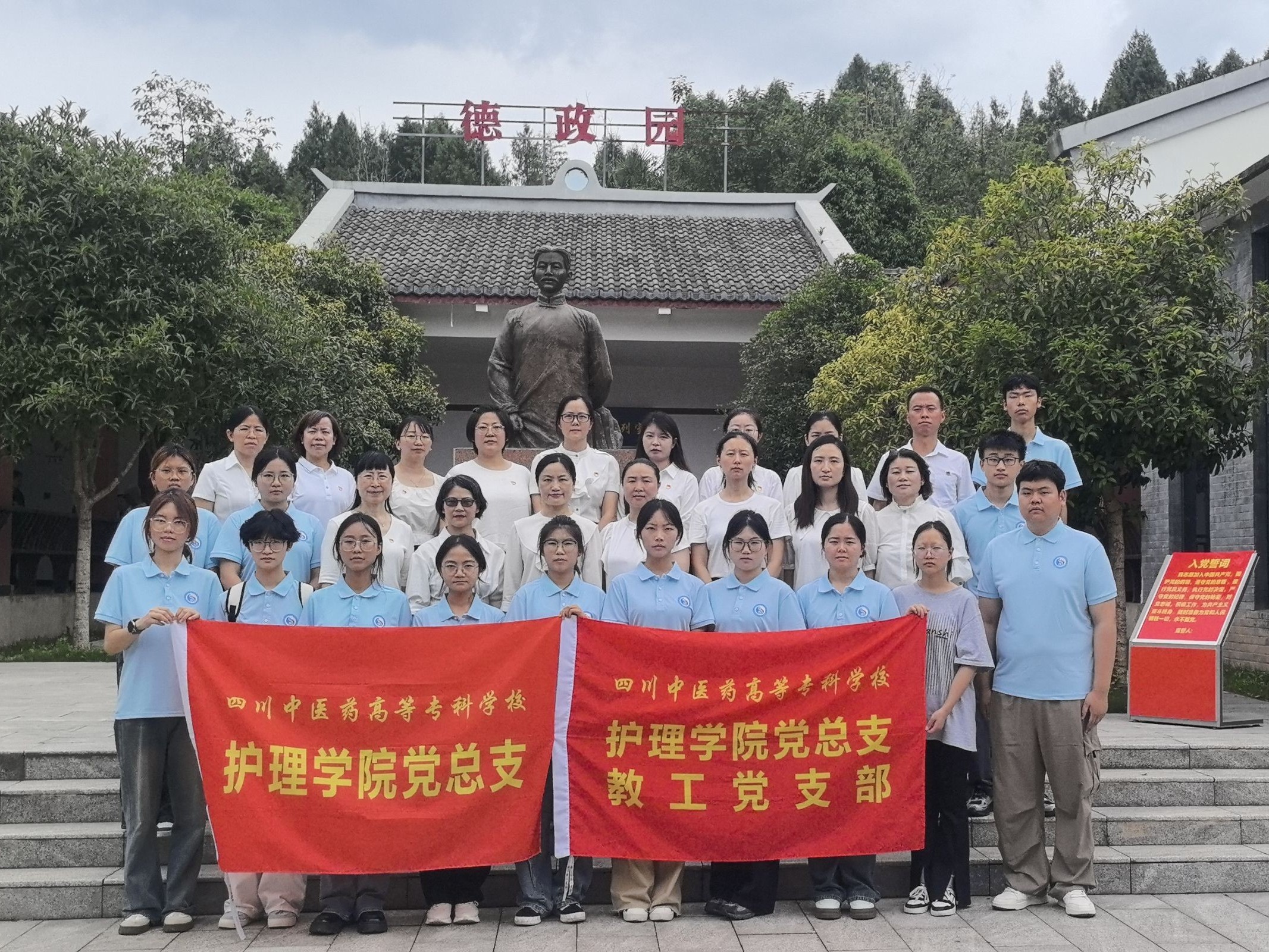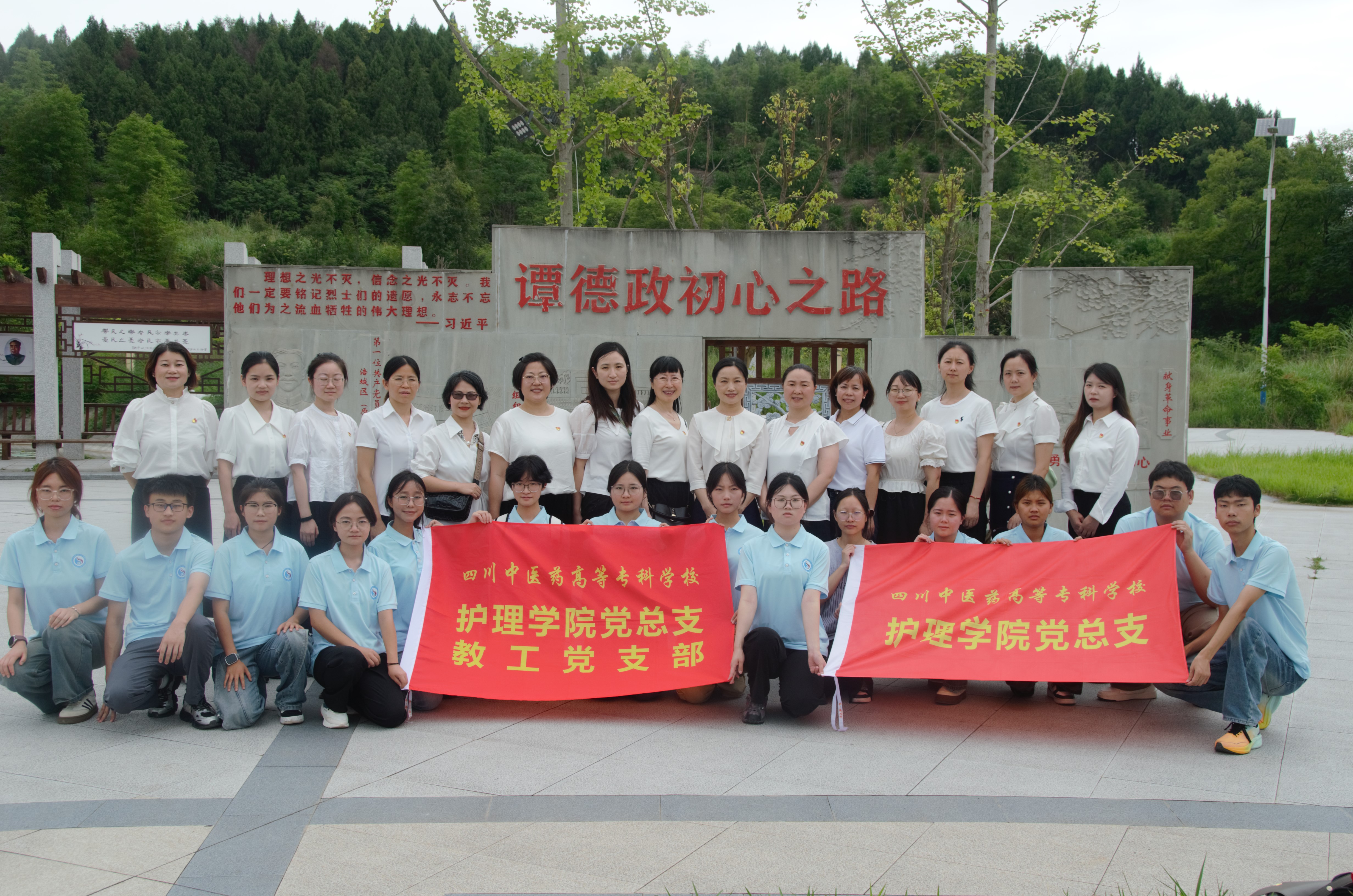 以习近平新时代中国特色社会主义思想为指导,坚持党建引领,发扬 “团结奋斗、追求卓越” 的川医专精神,依托四川省高校 “双带头人” 教师党支部书记工作室培育单位以及高校 “双带头人” 教师党支部书记 “强国行” 专项行动计划,护理学院始终将中央八项规定精神学习贯彻作为作风建设的重要抓手。7 月 3 日,学院组织党员师生赴绵阳市丰谷镇谭德政纪念园参观学习,并与清水村党支部开展党建联建,以红色教育铸魂、以基层交流赋能,推动廉洁自律意识入脑入心,为立德树人工作注入清风正气。