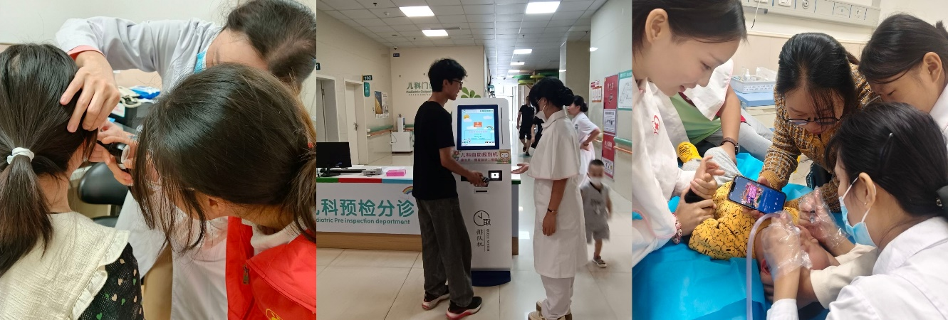 且听,是志愿者们热心指路与细心教会病人操作智能机器的声音。在医院中,志愿者们分别去到妇产科、儿科、耳鼻喉科等科室学习相关技能,为病人指路、答疑。