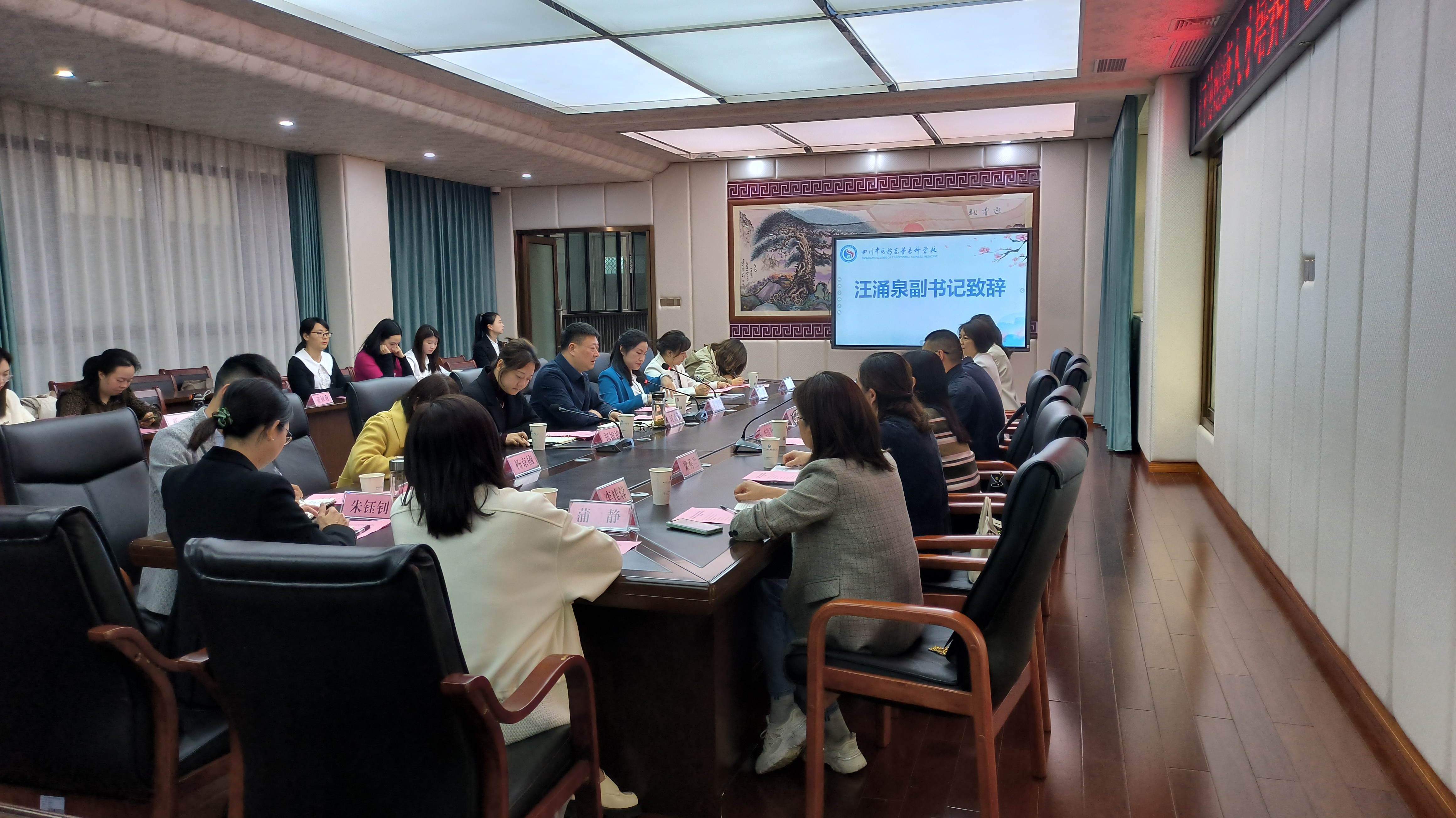 为进一步深化产教融合,助力高质量人才培养,4月26日下午,妇幼健康人才培养产教融合联盟第一次推进会在南区第四会议室召开,会议由护理学院院长吴学华主持,学校党委副书记汪涌泉出席会议。绵阳市中心医院、绵阳市第三人民医院、市妇幼保健院、江油市第二人民医院及成都禧玥健康管理有限公司5家单位相关部门领导、学校教务处副处长张维维、护理学院相关教师参加会议。