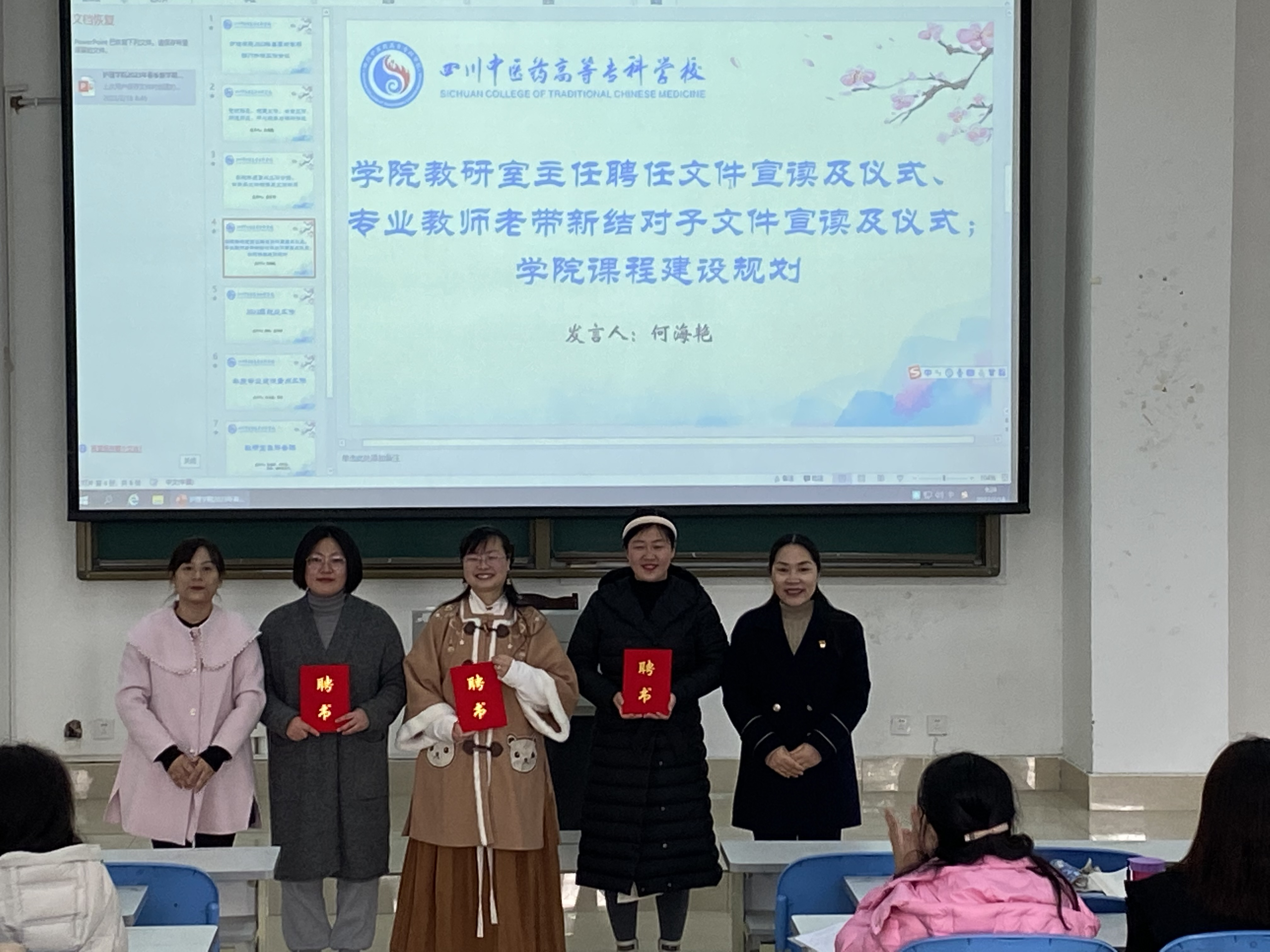 接着,由副院长何海艳宣读教研室主任聘任文件,由学院领导颁发证书。