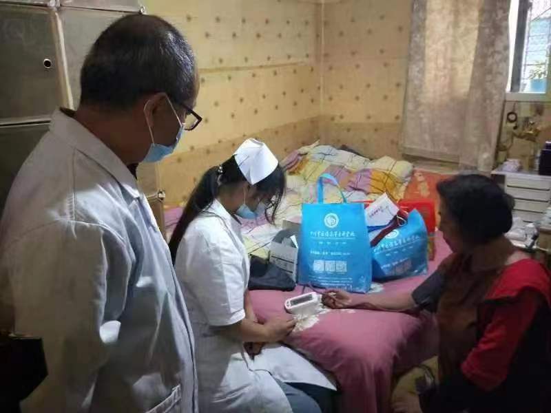 2022年5月27日我院南丁格尔志愿护理服务分队成员、红十字会志愿者参与了绵阳市政协志愿“润康行动”活动,为涪城区城郊街道6户困难家庭进行慰问。