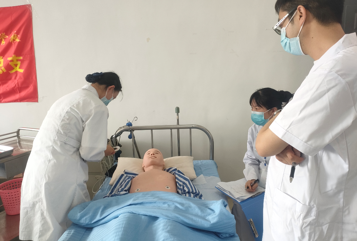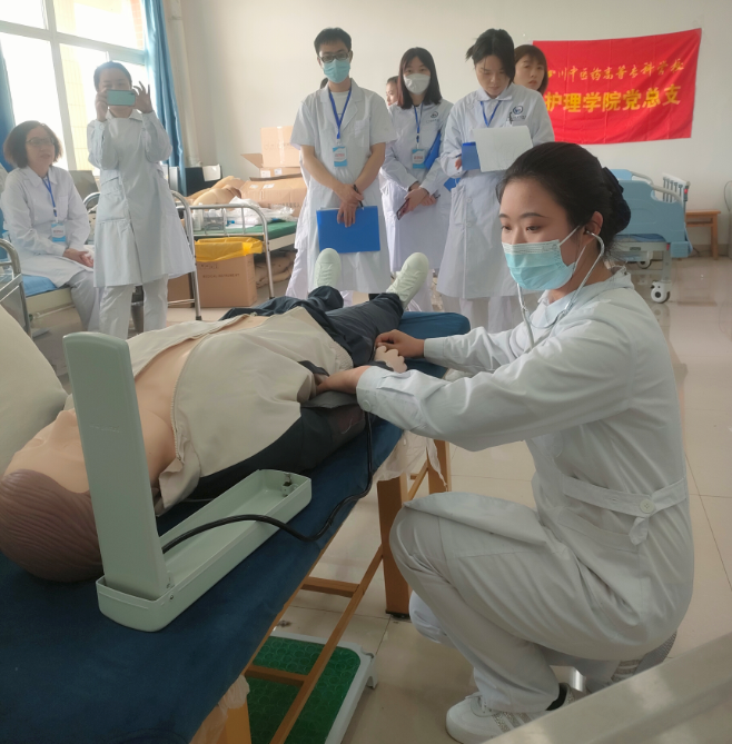 本次集体教研活动的主题是省级护理技能大赛模拟比赛及集体磨赛。四位选手代表学校分别参加四川省高职护理技能大赛及四川省健康与社会照护比赛。护理技能大赛包括双人心肺复苏、静脉留置针输液、心电监测和气管切开护理四个项目。健康与社会照护包括慢性病的健康指导、康复训练、健康海报制作等多项比赛内容。