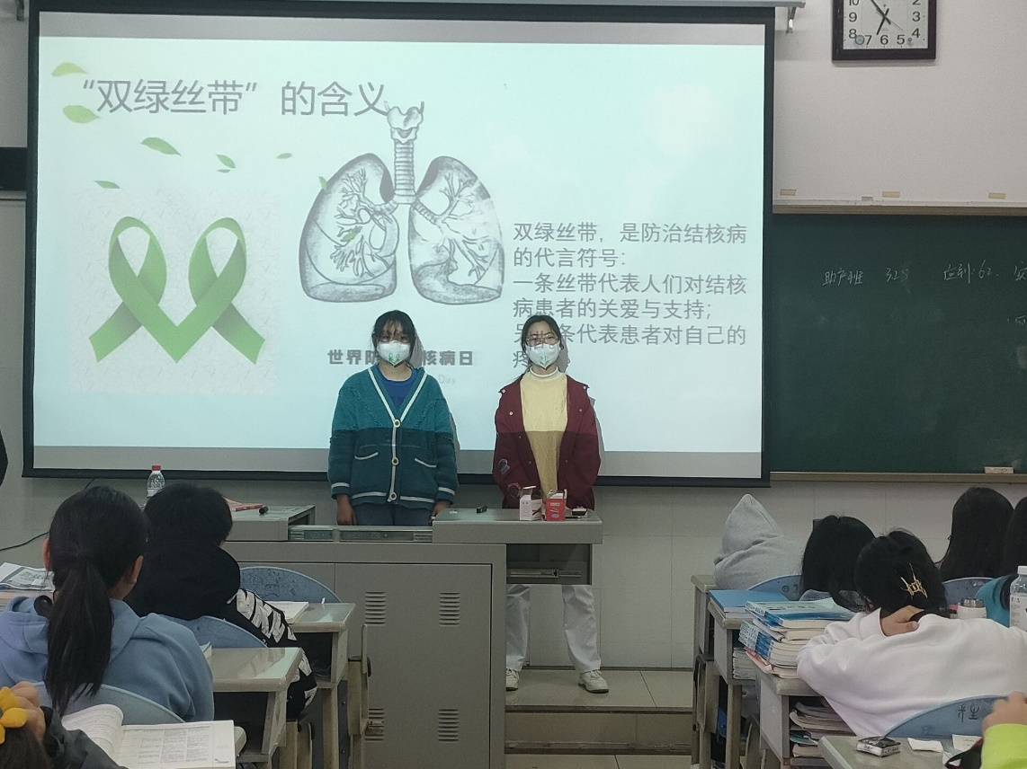 3月24日晚,护理学院各班级组织开展了“生命至上,全民行动,共享健康,终结结核”主题班会活动,宣传预防结核病。