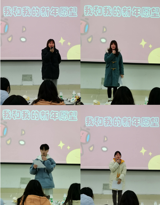 活动前,辅导员向大家送上了新年和元旦双节祝福,并通过同学向其家人传达了新年美好祝愿,希望同学们不忘初心使命,感恩社会、感恩学校和感恩家人,努力练就过硬的医学本领,早日实现理想愿望。而后,今年11月份、12月份以及新年1月份过生日的16位同学,头戴金色皇冠,在同学们欢声笑语和美好祝福声中,集体度过了一个难忘的生日。随后,全班同学们围绕“我和我的新年愿望”为主题,纷纷登台畅谈个人新年理想,总结回顾半学期学习情况,表达对老师同学和亲人新年祝福,以及述说个人对美好未来的期盼。