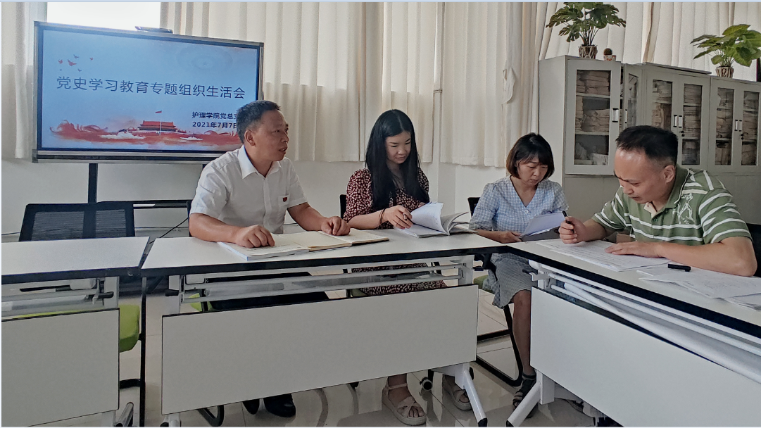 按照学校党委《关于召开党史学习教育专题组织生活会的通知》要求和党总支工作安排,2021年7月7日上午,护理学院党总支学生支部全体党员在护理学院办公室开展党史学习教育专题组织生活会,本次活动由党支部书记侯勇主持。