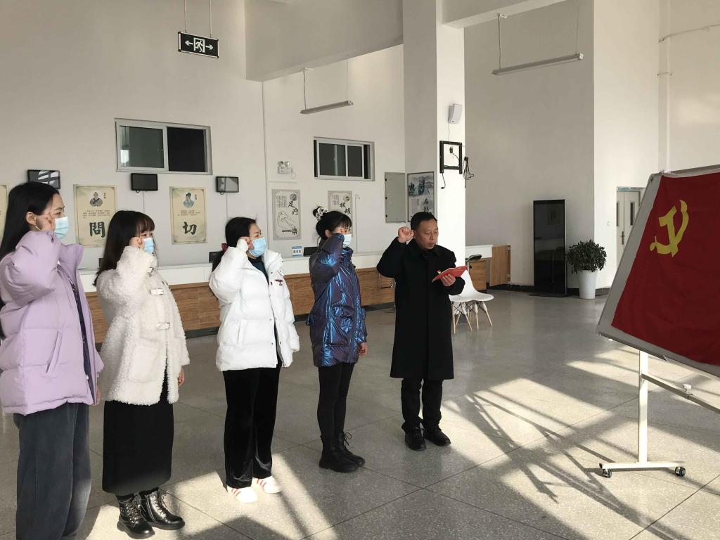 为增强预备党员责任感和使命感,在神圣庄严的氛围感染下,支部书记侯勇为预备党员佩戴党徽,并在侯勇的领誓下,每位预备党员站在鲜红的党旗面前举起右拳,“我志愿加入中国共产党,拥护党的纲领,……。”每个预备党员怀着无比激动、自豪的心情进行了庄严宣誓,表示今后一定要不忘初心、牢记使命,全心全意为人民服务。