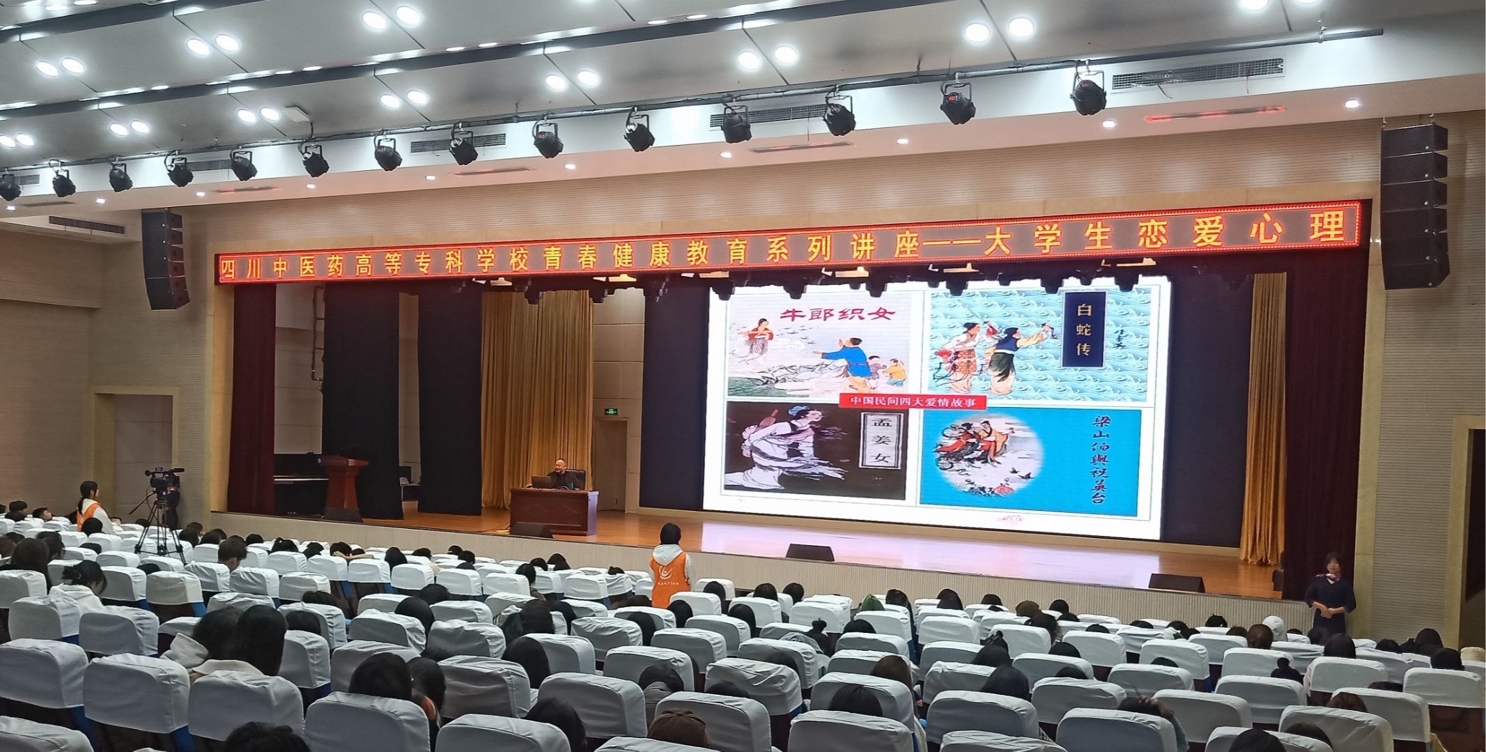 在大学生活中,爱情无疑是大学生最为关注的话题之一。而大学生恋爱早已不再是“犹抱琵琶半遮面”。它具有拔动心弦的魅力,令人寻觅和向往。为此四川中医药高等专科学校护理学院团总支学生分会青年发展部,于2023年11月6日晚19:30在北区礼堂开展以“大学生恋爱心理”为主题的青春健康教育系列讲座,本次活动邀请了绵阳师范学院王小林教授进行宣讲。
