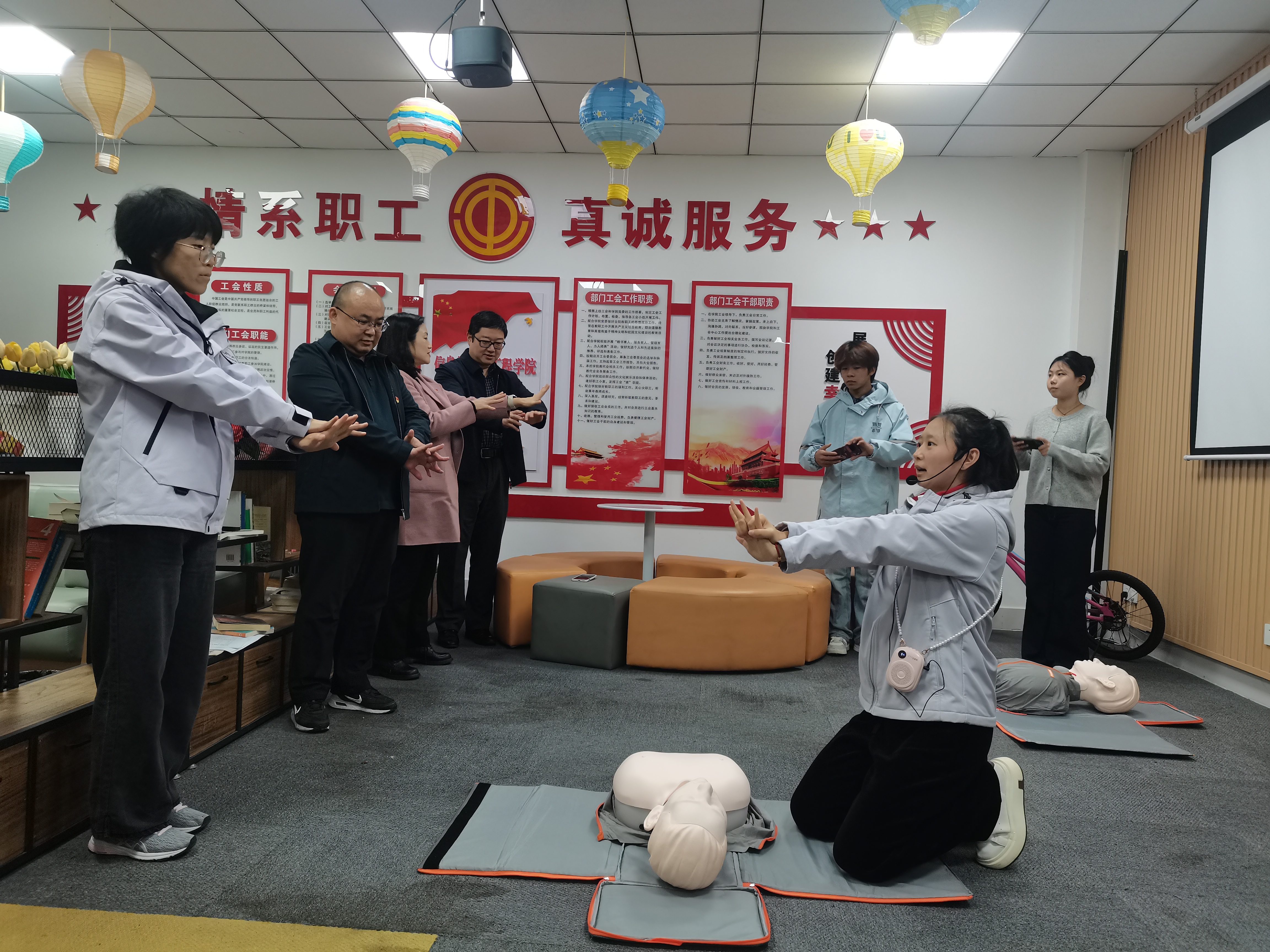 会后,我校师生组织了《黄金4分钟,我们能做什么?——急救处理》专题培训,西科大信息与控制工程学院的师生代表学习了心肺复苏、AED使用及海姆立克急救法;我校师生参观了工业互联网产业学院的创新实验室。