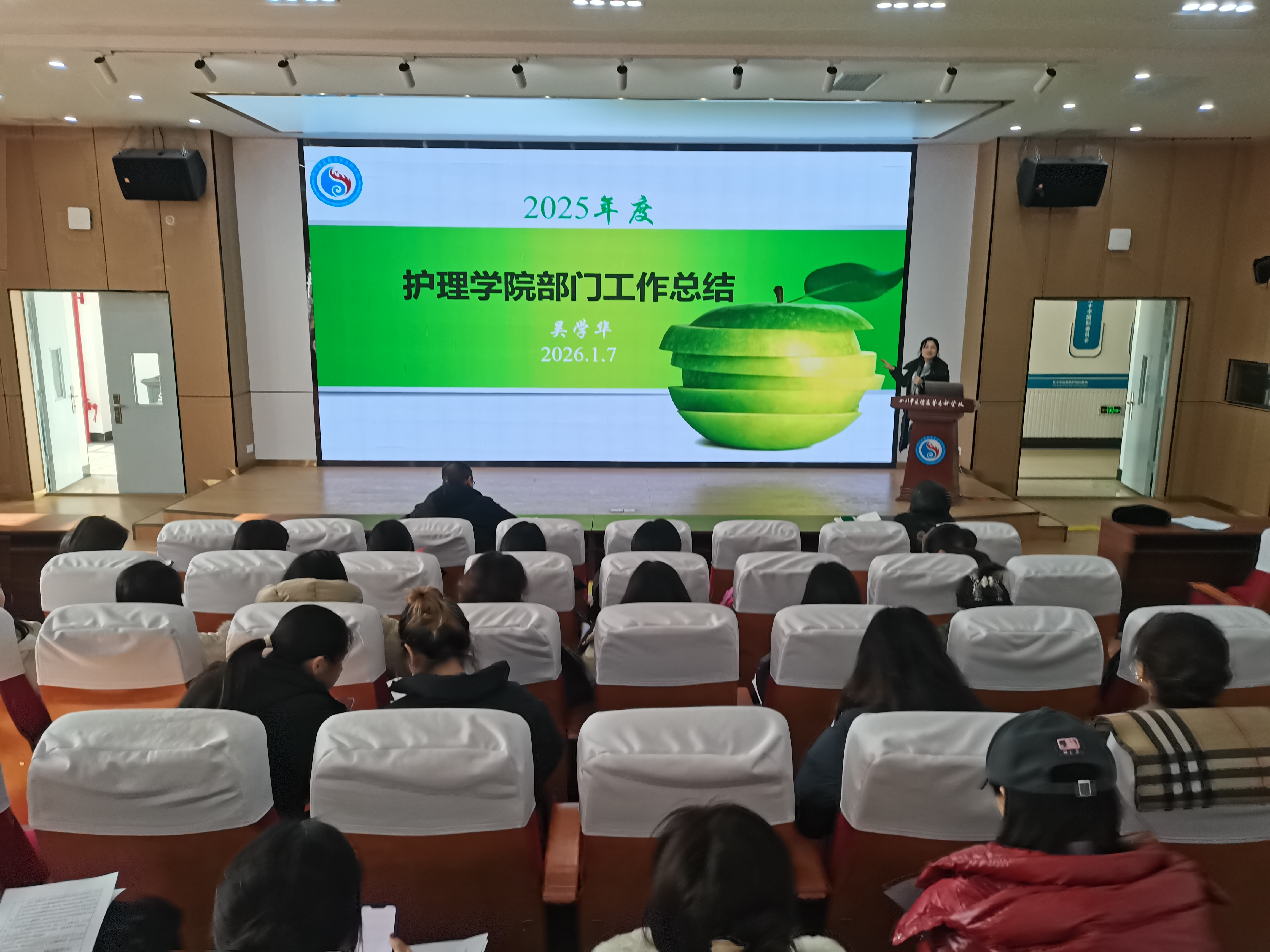 2026年1月7日下午,护理学院在北园学术厅召开2025年度工作总结暨党员评议大会。分管校领导肖玲副校长出席会议,学院全体党员、教职员工参加。