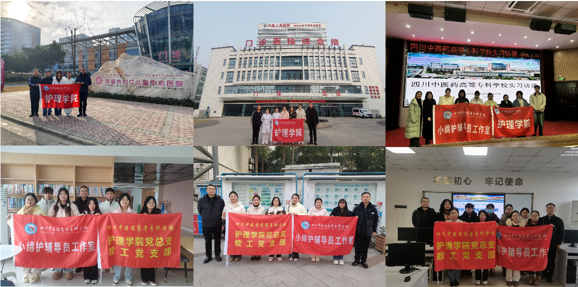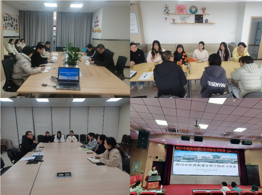2026年1月13日至15日,护理学院党总支书记邓海宁、副院长汪晶分别带领毕业班辅导员一行,分头到泸州片区的合江县人民医院、泸州市人民医院、泸县人民医院,以及成都片区的成都中医药大学附属医院、成都市妇女儿童中心医院、成都市青白江区人民医院开展访企拓岗暨实习走访调研。