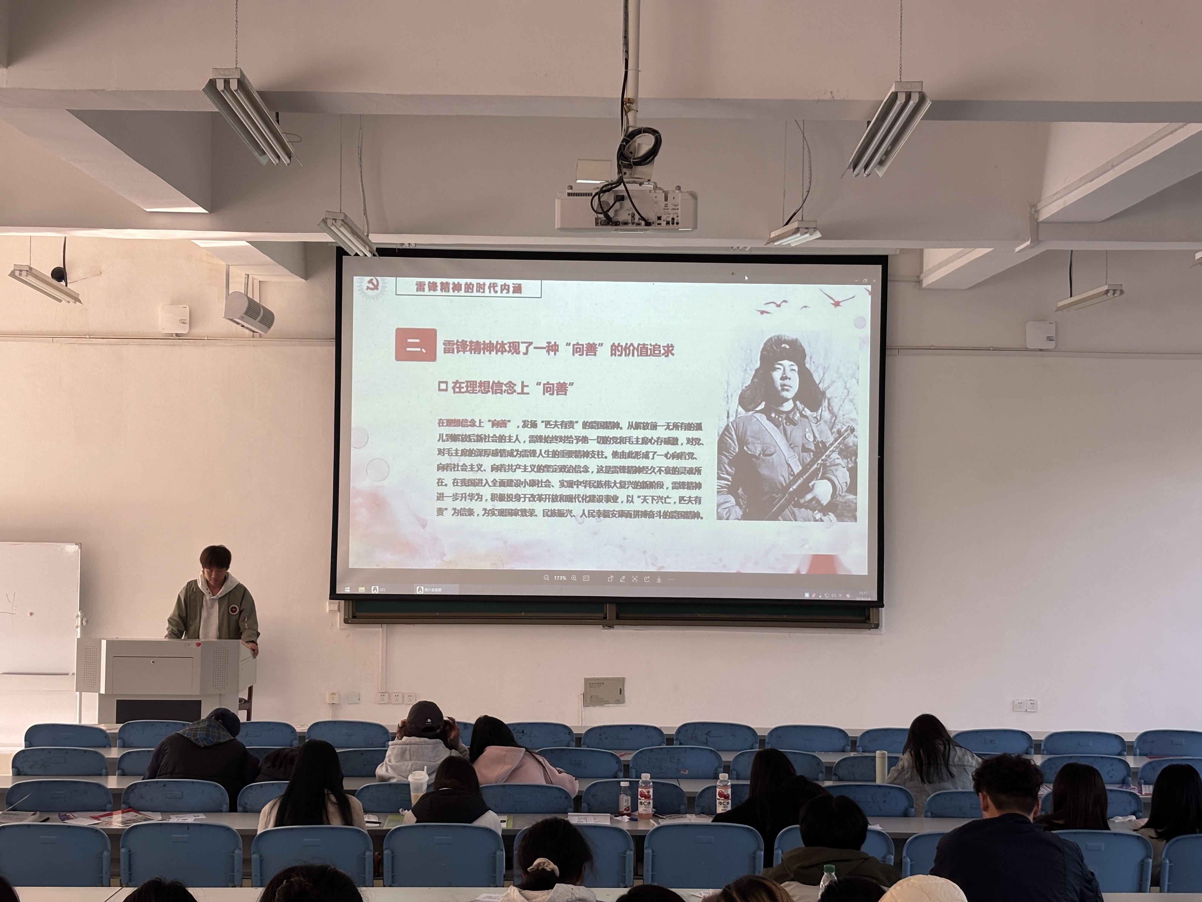 学院坚持把思政教育贯穿学雷锋活动全过程,将雷锋精神与大学生日常思政教育紧密结合,创新学习形式、丰富学习载体,让雷锋精神入脑入心。各班级依托主题班会,开展“雷锋精神与护理担当”专题研讨;各教研室联动党支部,组织师生通过线上线下相结合的方式,品读雷锋书籍、观看雷锋题材红色影片、赏析雷锋主题画册与邮票,重温雷锋同志无私奉献、爱岗敬业的感人事迹,深刻领悟雷锋精神的时代内涵。同时,依托党建引领团建,发挥学生团支部战斗堡垒作用,组织团员青年开展“雷锋精神伴我行”分享会、主题团日等活动,引导青年学子将雷锋精神与南丁格尔精神相融合,树立“以患者为中心”的职业理念,把爱国情、强国志、报国行融入护理专业学习和未来职业发展中。
