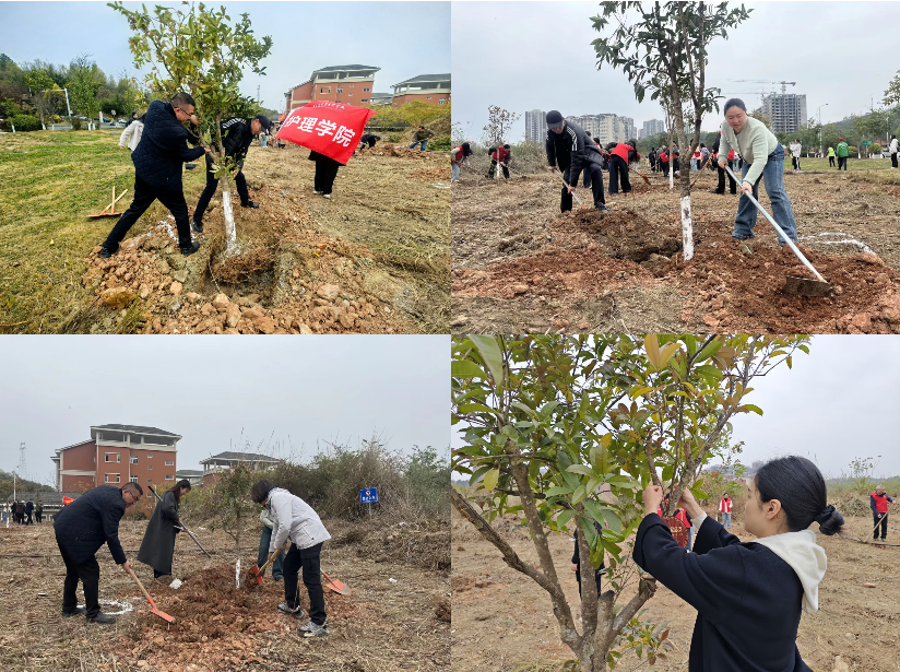 春回大地,绿染校园。3月12日下午,护理学院积极响应学校“春植凝合力 绿筑新图景”号召,全体党员干部主动参与、冲锋在前,以实际行动践行生态文明理念,将护理专业“绿色护理、仁心护佑”的特色理念融入植树实践,把医者对生命的敬畏化作护绿的行动,为美丽校园再添生机与活力。