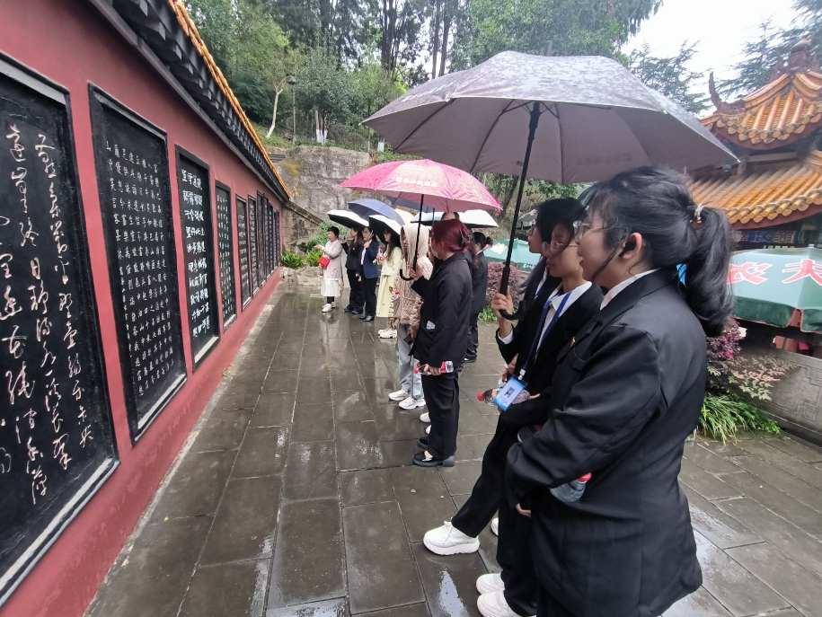 富乐山优美的自然景观和浓厚的历史文化吸引了老师和同学们的目光。锦州碑林巨幅“涪城会”浮雕,记录了当年刘备与刘璋涪城相会的场景,通过停驻学习,老师和同学们透过这些浮雕仿佛看到了三国时期的政治风云、社会风貌和民情风俗。