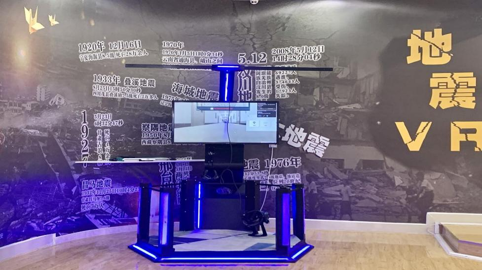 自然灾害区:占地面积105㎡,可容纳100余人。其中VR地震体验区占地55㎡,运用三维立体技术构建虚拟场景,模拟地震发生的过程。让体验者体会到地震的残酷与无情,在灾害来临时选择正确的应对方法。