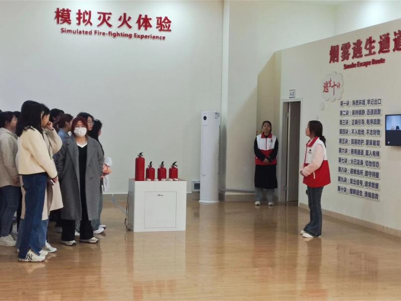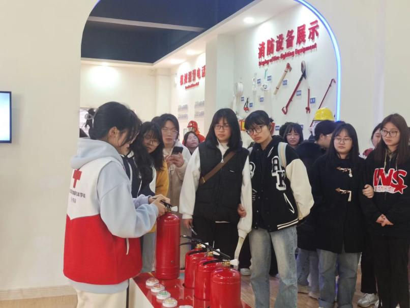 活动开始,同学跟随讲解员的步伐走进红十字文化长廊,了解红十字会历史的由来。走进体验馆,同学们有序参观并认真学习各类急救仪器,通过“场景+情景+体验式”模拟教学方式,同学们参与并体验消防灭火、火灾逃生、分娩疼痛、自救结绳、伤员急救等模块。在火灾逃生体验环节,参与者通过逼真的场景,真实体验到意外发生时的情景,掌握正确的逃生及自救方法。