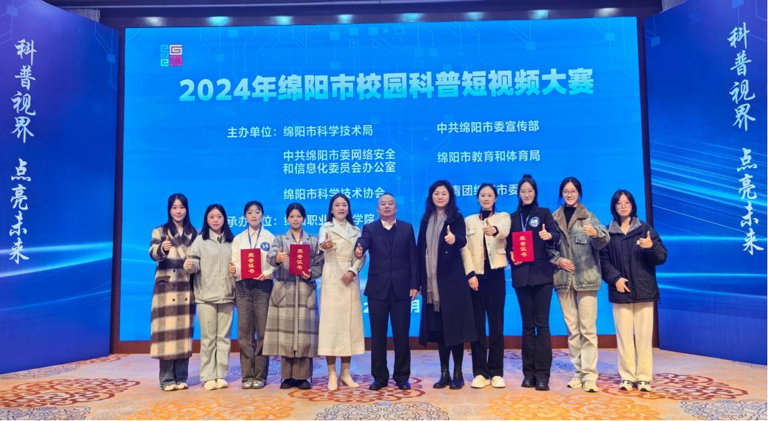 2024年11月22日,由绵阳市科学技术局、中共绵阳市委宣传部、中共绵阳市委网络安全和信息化委员会办公室、绵阳市教育和体育局、绵阳市科学技术协会以及共青团绵阳市委六部门联合举办的2024年绵阳市校园科普短视频大赛在绵阳富乐山九州国际酒店圆满落幕。此次比赛多所高校的20部作品脱颖而出,成功入围决赛。四川中医药高等专科学校在此比赛中荣获二等奖2名,三等奖1名。